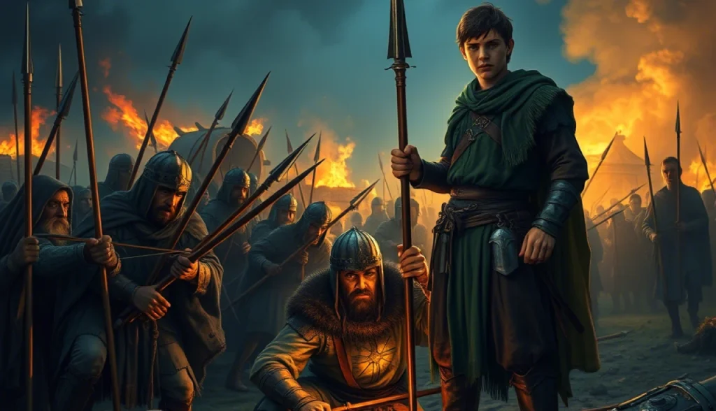 Na Irlanda medieval, o clima estava tenso. O ano era 1170, e a pressão das forças inglesas, lideradas pelo conde de Pembroke, conhecido como Strongbow, ameaçava a liberdade do povo irlandês. Eu, um jovem líder da aldeia, sabia que não podíamos permitir que nossos lares fossem invadidos sem lutar.