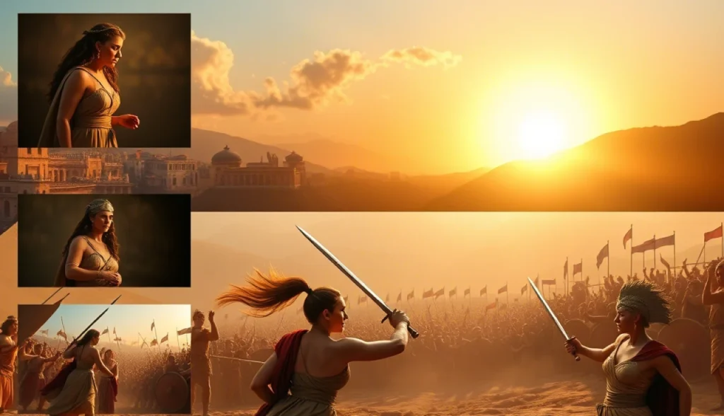 O duelo começa, e as espadas se cruzam com uma intensidade que faz o coração de todos na cidade disparar. Clitemenestra é ágil, movendo-se com a graça de uma leoa, desferindo golpes que ecoam a força de todas as mulheres que vieram antes dela. Ao observar cada movimento, percebo que não é apenas uma batalha física; é uma luta pela dignidade e pelo reconhecimento de que as mulheres também têm um papel vital na história.