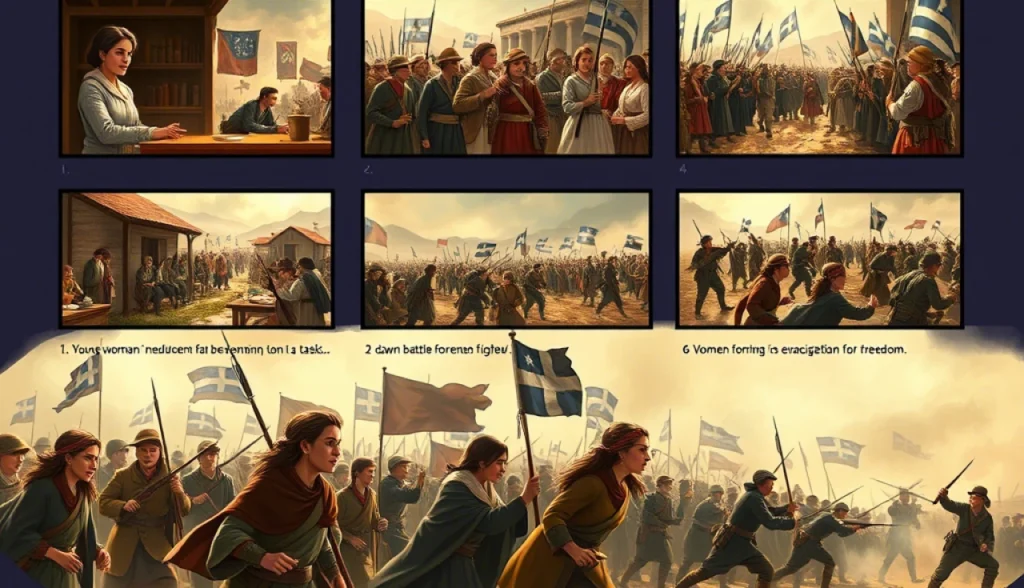 Durante os tumultuosos dias de 1821, na Grécia, a luta pela liberdade contra o domínio otomano ganhava força. Eu, uma jovem chamada Eleni, estava imersa na fervorosa atmosfera de Atenas, onde os ecos de gritos de liberdade ressoavam pelas ruas. Como mulher em um tempo de rebelião, eu sabia que meu papel era mais do que apenas cuidar da casa; eu estava determinada a apoiar meu povo na luta pela independência.