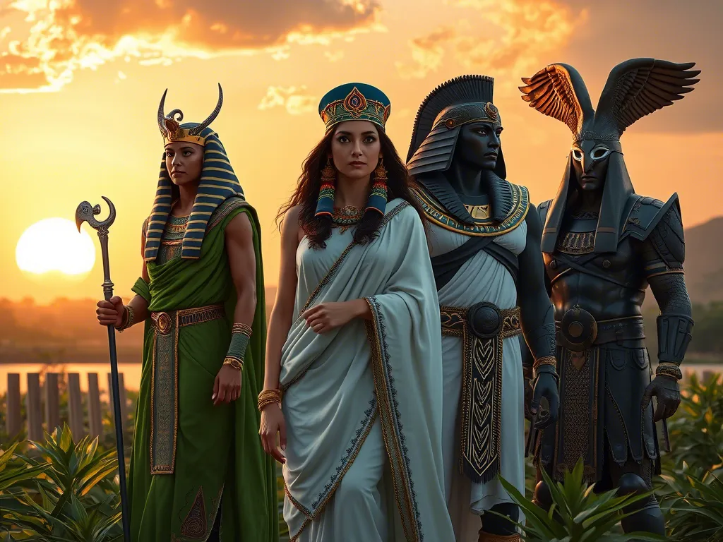 Primeiro, temos Osíris. Ele era o deus da agricultura e da vida após a morte. Todo mundo adorava Osi, até que chegou o Set, irmão dele, com uma invejinha básica. Set era o deus do caos e do deserto. Quem nunca teve um irmão que só quer arrumar briga, né? A história fica mais intensa quando Set decide matar Osíris por ciúmes!