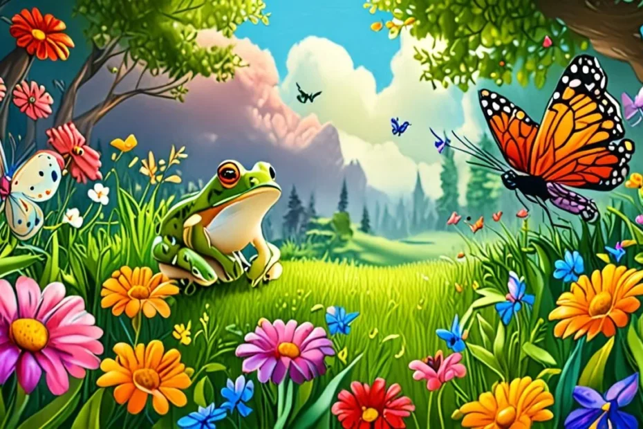 Era uma vez, em um lindo lago cercado por árvores verdejantes e flores coloridas, um sapo chamado Zé. Zé era um sapo sonhador que passava os dias pulando de pedra em pedra, mas havia uma coisa que ele queria mais do que tudo nesta vida: ir à festa no céu.