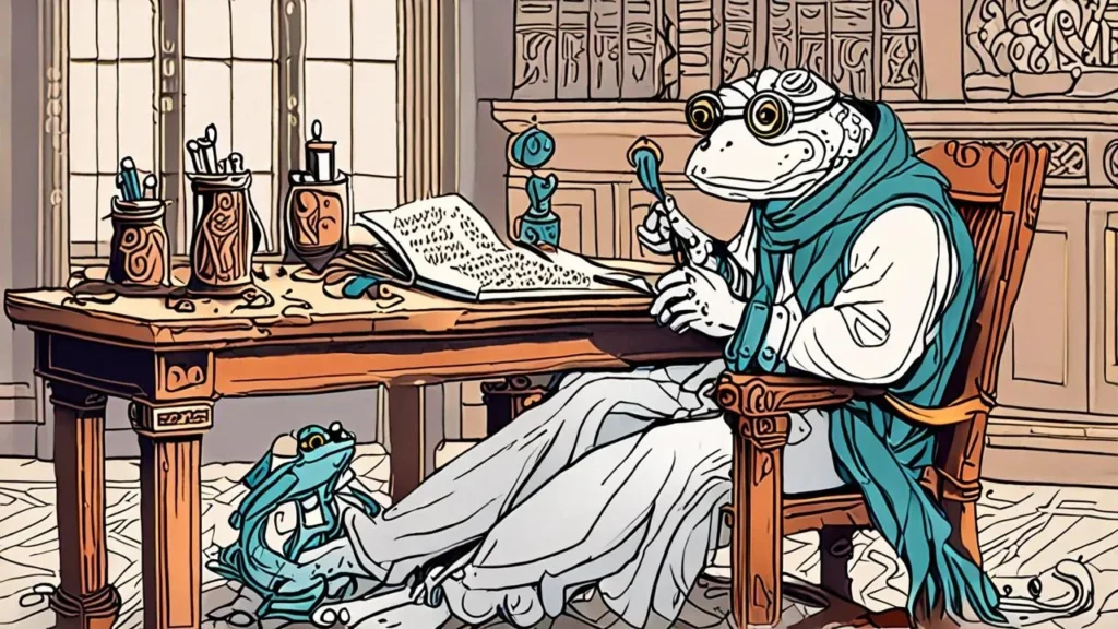 Teodoro respondeu com um sorriso: “Escrever é como brincar com as palavras! É uma maneira de guardar as memórias e compartilhar o que aprendo.” Essa pequena conversa já mostrava a profundidade do sapo.